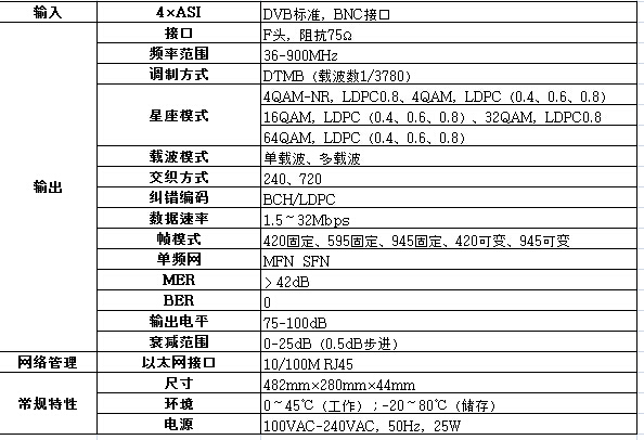 支持BCH/LDPC編碼,交織和基帶成型等處理。該調(diào)制器符合國標(biāo)地面調(diào)制標(biāo)準(zhǔn),是無線數(shù)字電視前端的主要設(shè)備之一。